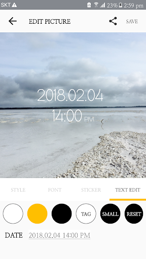 사진에 날짜/시간을 찍어서 저장할 수 있어요.