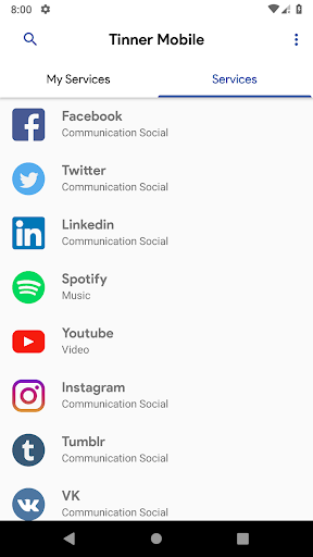 Services de messagerie sociale dans une application, des réseaux sociaux, des vidéos et de la musique.