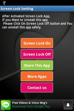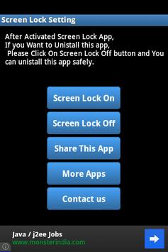 1) Avant de désinstaller, cliquez sur exécuter l'application Paramètres de verrouillage de l'écran et cliquez sur "Verrouillage de l'écran désactivé" bouton.