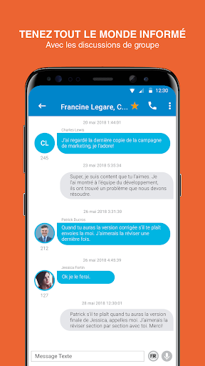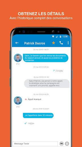 HISTORIQUE COMPLET DE COMMUNICATIONS : Les appels, messages vocaux et messages textes sont tous enregistrés chronologiquement afin que vous puissiez voir exactement ce qu’il s’est dit entre vous et votre interlocuteur.