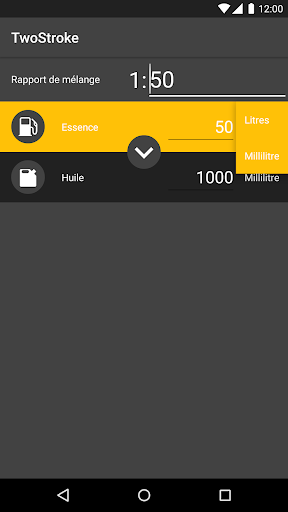 Spécifiez simplement le rapport de mélange et entrez la quantité existante d'huile ou d'essence, la valeur manquante est déterminée.