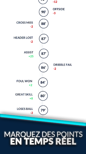 Suivez votre historique des points pour être informé des points que vos joueurs accumulent. Votre score change en fonction des actions réalisées par vos joueurs sur le terrain - passes, tacles, interceptions et bien plus encore!
