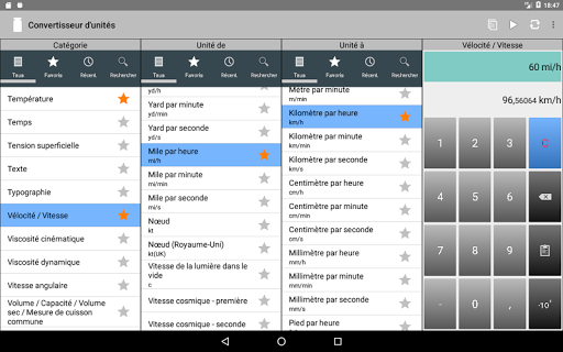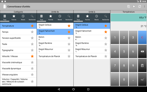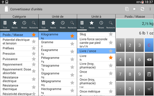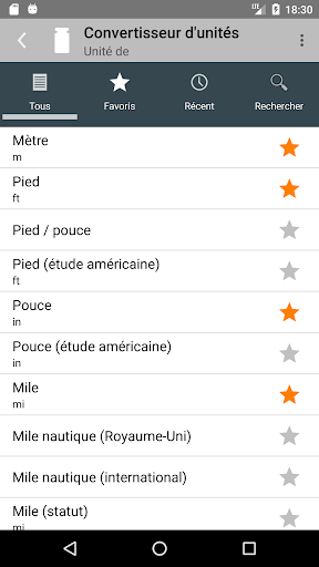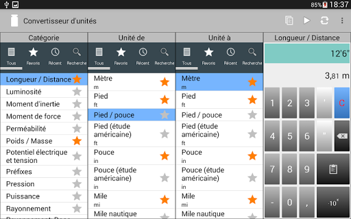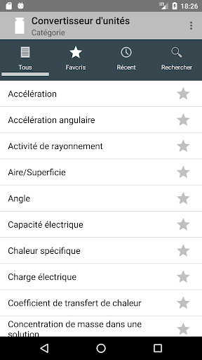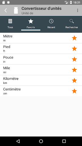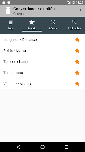 Les deux catégories de conversion et d'unités de conversion peuvent être marqués comme Favorites pour un affichage simplifié dans la visualisation des Favoris.