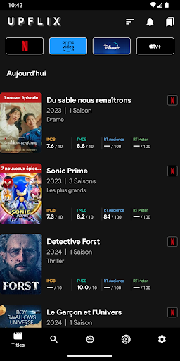 Restez en avance dans l'ère du streaming avec Upflix - votre guide définitif pour les films et séries sur les principales plateformes de streaming. Si vous êtes abonné à Netflix, Disney , Prime Video et Crane, Upflix est parfait pour vous!