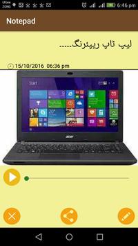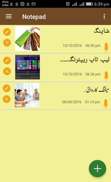 Record your thoughts in this simple notepad memo in Urdu language with Urdu nastier keyboard. Using this Urdu Notepad Memo Pad you can add a visual touch to your memories by inserting images and voice recording for your notes.