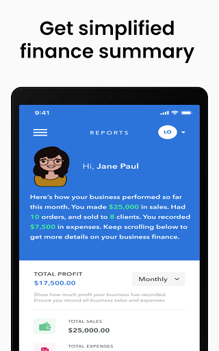 - Suivez les performances de votre entreprise. Examinez vos rapports sur les ventes, les profits et les pertes, etc.