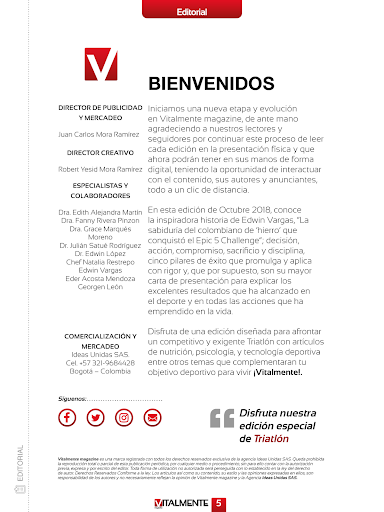 Vitalement magazine, est un magazine numérique interactif téléchargeable à travers un sport gratuit spécialisé - Santé - Nutrition sportive, dirigée contre les hommes et les femmes, entraînement dans la salle de sport ou en pratique différents sports de plein air intéressés par des produits corporels, des produits mentals et de haute qualité, des piliers fondamentaux à Atteindre une meilleure performance sportive et un mode de vie plus sain.