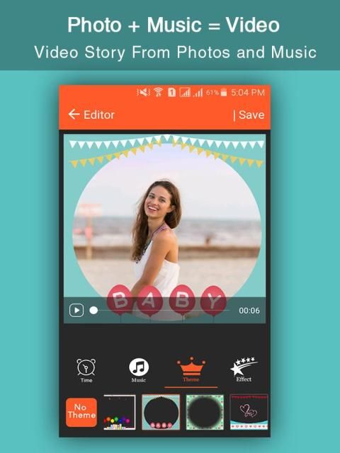 - Videography, photography: I can choose images from your library or taking pictures of memorable moments to create video picture with my own music or slideshow with my own music for android