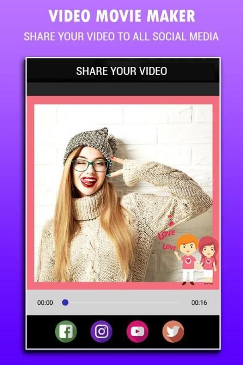 - Sticker: We have a lot of free stickers and funny icons in video creator photo slide with music