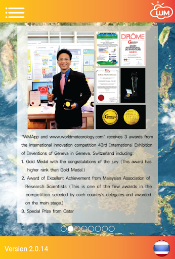 1) WMApp is significantly different from other applications in this field since all information illustrated in WMApp, except earthquake reports, is produced using models and algorithms that have long been developed by the founder of WMApp, Dr. Chinnawat Surussavadee, and his co-author.