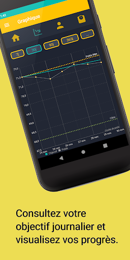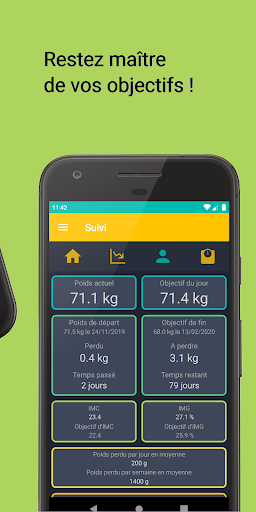 Vous utilisez l’application afin de maigrir ou simplement stabiliser votre poids après un rééquilibrage alimentaire. Mais vous pouvez également l’utiliser si vous avez besoin de grossir ou prendre un peu de poids. Vous choisissez le type de suivi en vue de de surveiller votre poids de manière simple et intuitive.
