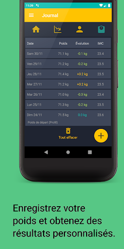 Vous souhaitez faire le suivi de votre poids et de votre IMC dans un journal simple et efficace ? Cette application va vous aider à surveiller votre poids ou tout simplement vous permettre de connaître et maintenir votre poids idéal.