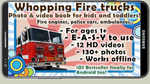 Camions de pompiers de Whopping est une application très simple de l'application de diaporama / vidéo vidéo pour les petits enfants et les tout-petits, contenant de nombreuses photos, sons et vidéos sur les camions de pompiers, les ambulances, les voitures de police, etc. L'application elle-même est très facile à utiliser, afin que les enfants puissent gérer tout seul.
