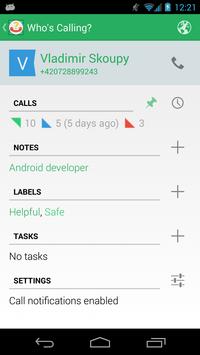 Get control over calls back to your hands with "Who's Calling?" application. Now you can lookup information about incoming calls before you decide to accept or decline them. Your previous notes or notes of your friends are available for callers that you know, or you can use the collective wisdom of all of the users of this application to discover weather the unknown number that is just ringing is worth your time.
