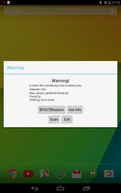 [NON-ROOT] & [ROOT] This application is created to prevent hackers' ARP spoofing attack (MITM), which used by some applications such as WifiKill, dSploit, and sniffers. It's very simple to use for Wi-Fi protection, just one button (on/off) and some settings. It can show you information about hacker and restore ARP table (you need root). It also works without root giving you information about attack. Non-root features: - gives information about attack Root features: - active mode(restores ARP table) - passive mode(static ARP table) Tags: dSploit, WiFiKill, droidsheep,sniffer, ARP, secure, antivirus, attack, MITM, man-in-the-middle, automatic, hacker, root, hack, WiFi, protect, protection, Wi-Fi