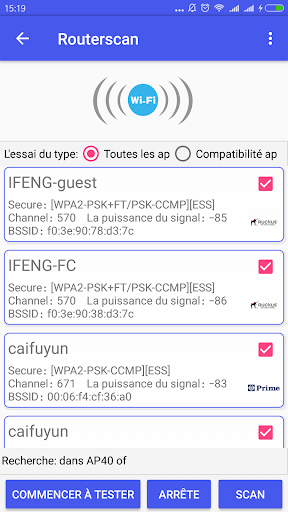 2. Vous pouvez connecter le test de connexion Wi-Fi avec le SSID spécifié en même temps et vérifier le téléchargement du fichier. Dans le même temps vraiment WEP, WPA, WPA2 IEEE802.1x et d'autres types de sécurité pour connecter le test. Vous pouvez afficher la puissance du signal, l'adresse MAC de chaque routeur sans fil dans le test.