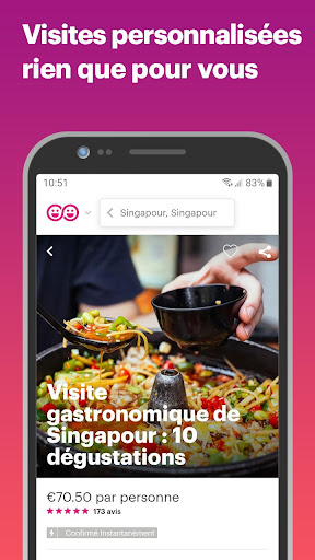 Vous venez d'arriver à destination ? Vous cherchez des choses à faire dans les environs ? C'est maintenant possible avec l'application Visites & Voyages de Withlocals ! Mieux que n'importe quel livre, laissez-vous guider par un local ! Trouvez des visites guidées et des expériences culinaires uniques dans plus de 50 villes à travers le monde. Vous pourrez profiter des points forts de la ville et découvrir ses trésors cachés sans l’affluence touristique.