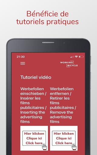 - Téléchargement facilement des photos de ta boîte pour partager de belles impressions avec Working Bicycle