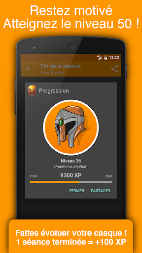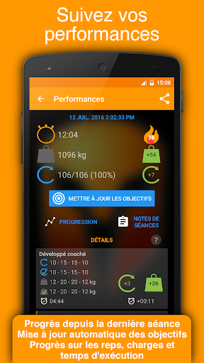 • À la fin de la séance, votre progression est affichée, vous pouvez tracer vos courbes de progression pour vous motiver