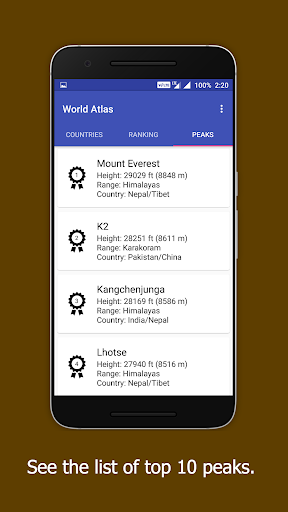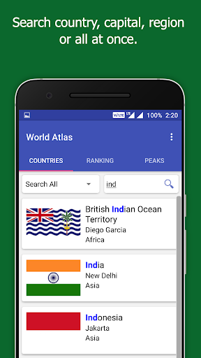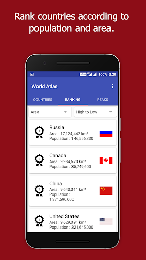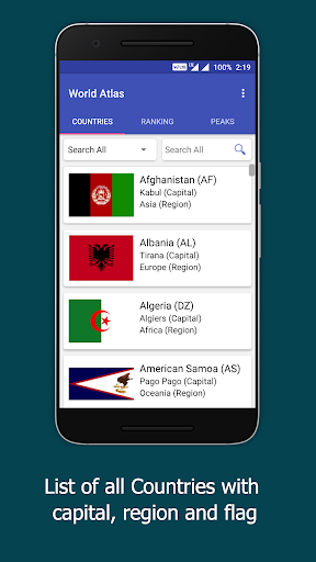 World Atlas contains information about almost 250 country like capital, the country flag, currency, border, etc.