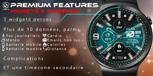 - Widget d'horloge (Seconde non affiché pour raison d'autonomie de batterie)