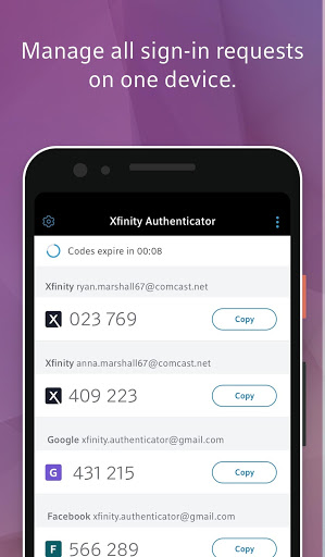 • Approuver facilement les demandes de connexion avec votre empreinte digitale. Vérifiez votre numéro de téléphone mobile et votre adresse e-mail personnelle • Créez de manière sécurisée des codes de vérification en deux étapes de la plupart des fournisseurs pris en charge • Gérer les demandes de connexion de plusieurs utilisateurs de Xfinity et des comptes tiers sur un périphérique