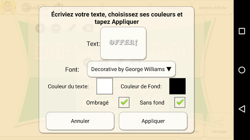 Vous pourrez composer votre affiche en ajoutant du texte, des images ou des symboles. Ceux-ci pourront être placés et