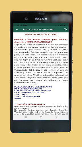 Notre application de louanges au Santisimo Sacramento contient les prières de base essentielles pour la visite de notre Seigneur Eucharistie, parmi laquelle on peut mentionner: