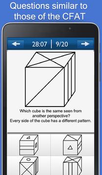 Practice up to 700+ questions divided into the 3 test categories of the CFAT.