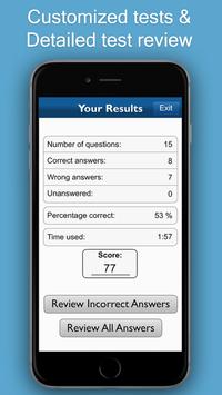 After each practice session your results with score are displayed, you can review questions and read a detailed explanation of almost every answer.