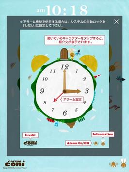 オリジナルコンテンツ『カリーノ・コニ』の主人公、野うさぎの「コニ」と可愛いキャラクターたちがいっしょに散歩するなんともかわいらしい時計です。 5種類の音を選べるアラーム機能も付いているので、毎日の生活でもとても便利に活躍します。 キャラクターをタップすると、キャラクターの紹介を見られます。 また、登場キャラクターは1時間ごとに、交代するから、何度もチェックしてみてね。 スマートフォンなら家時計としてインテリアに、タブレットなら普段使いに最適です。 ぜひ、かわいいコニや仲間たちと毎日をご一緒に。