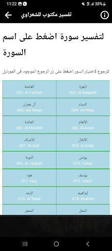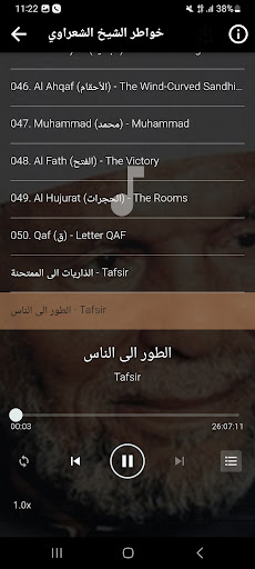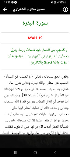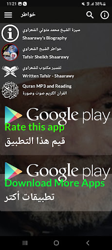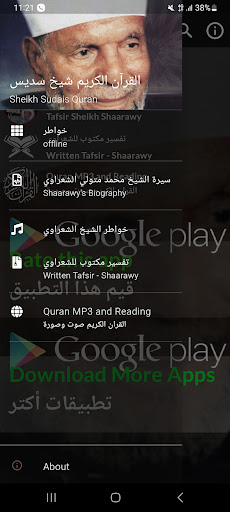 L'application contient l'interprétation du Saint Coran par Sheikh Muhammad Metwally al -Shaarawi, que Dieu ait pitié de lui (voix et image), où l'interprétation de Sheikh al -Shaarawi se caractérise par une explication simple et facile de la signification de la signification du sens Saint Coran et interprétation des images.Et ne nous oubliez pas du bien de la supplication