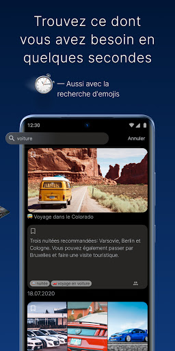 Grâce à notre système d'organisation avancé, les notes sont triées par dossiers et catégories. La technologie de recherche intelligente vous aide à trouver exactement ce dont vous avez besoin exactement quand vous en avez besoin!