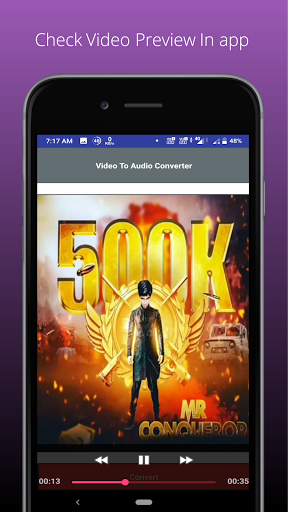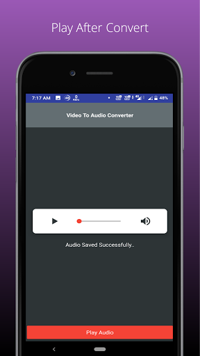 Convert your video into audio format, Easy to Extract your mp3 from your videos, its extract a original audio from the video file so its so Powerful app for audio extract