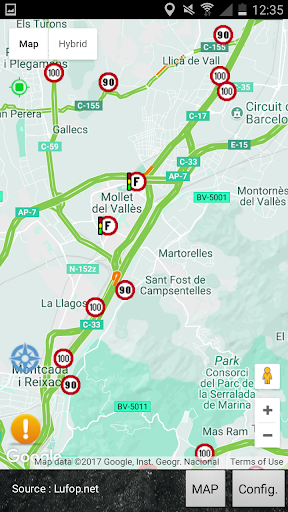 L'application contient tous les types de Radars et Zones de Danger fixes telles que les radars de vitesse, radars feu, de tunnel de tronçons, ...