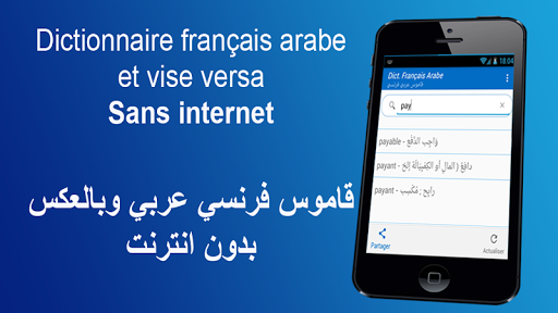 Dictionnaire français - arabe et arabe - français simple, rapide et pratique contient des milliers de mots et expressions.. Le dictionnaire est hors connexion . Le dictionnaire contient l'entraîneur de vocabulaire. C'est un moyen facile d'apprendre de nouveaux mots.