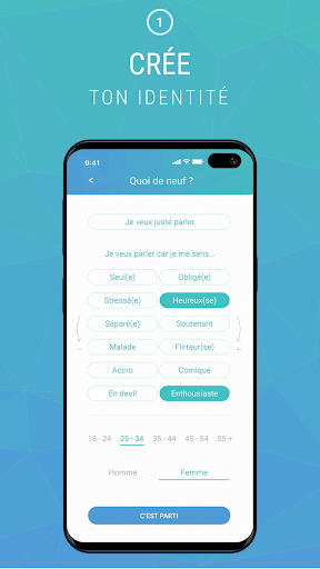 Profite de bembey en quatre simples étapes : Crée ton identité, Découvre tes rubriques, Connecte-toi avec les gens, et Discute anonymement !