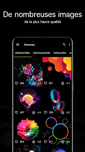 L'application fera découvrir au monde d'excellents fonds d'écran 4K avec des noir pour Android sur téléphone ou tablette. Les fonds d'écran passent des vérification manuelle et des sélection avant d'arriver au catalogue, cela garantit d'avoir des fonds d'écran de haute qualité. De nouveau photos gratuits pour Android sont ajouté 24/24 7/7 365/365.