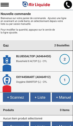 Vous pouvez associer en quelques secondes une bouteille à un projet, un chantier ou un département de votre entreprise pour mieux suivre la consommation par projet ou entité. Oxygène, argon, acétylène, propane, azote, hydrogène, CO2, métaux d’apport, abrasifs, produits de sécurité ou accessoires de soudage ou de coupage : Alex répond à tous vos besoins. Vous pourrez naviguer de façon intuitive à travers le catalogue de produits Air Liquide et sélectionner ceux qui correspondent à vos besoins pour effectuer une commande. Un moyen sécuritaire, efficace et adapté à votre réalité qui vous permettra d’éviter bien de la paperasse.