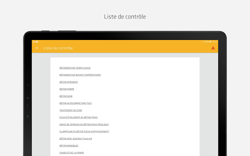 Toutes les informations pertinentes sur le thème du béton sont disponibles rapidement et de manière claire dans une application.