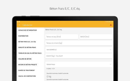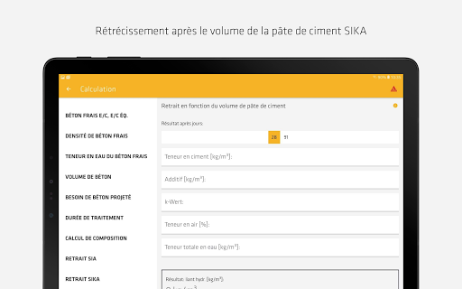 Mais ce n'est pas tout! L'application Sika Beton APP offre d'autres fonctions très utiles: