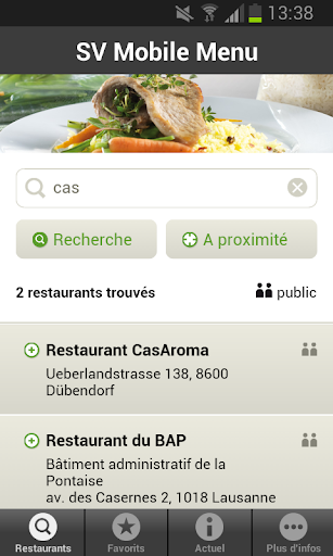«Mobile Menu» répertorie les restaurants SV dans toute la Suisse. L’app est gratuite et disponible en allemand, français, italien et anglais.