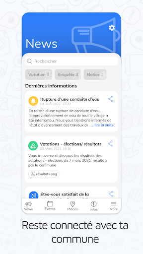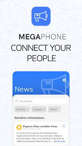 Maintenir le flux d'informations dans une communauté est souvent un véritable défi. Bien trop souvent, les informations s'infiltrent, se retrouvent au mauvais endroit, ne sont pas remarquées ou le sont trop tard. Avec cette application, Megaphone Communications SA vous offre une plate-forme appropriée pour vous apporter des informations.