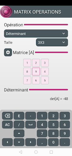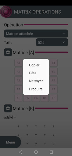Matrix Operations est une application qui effectue des opérations mathématiques avec des matrices telles que :