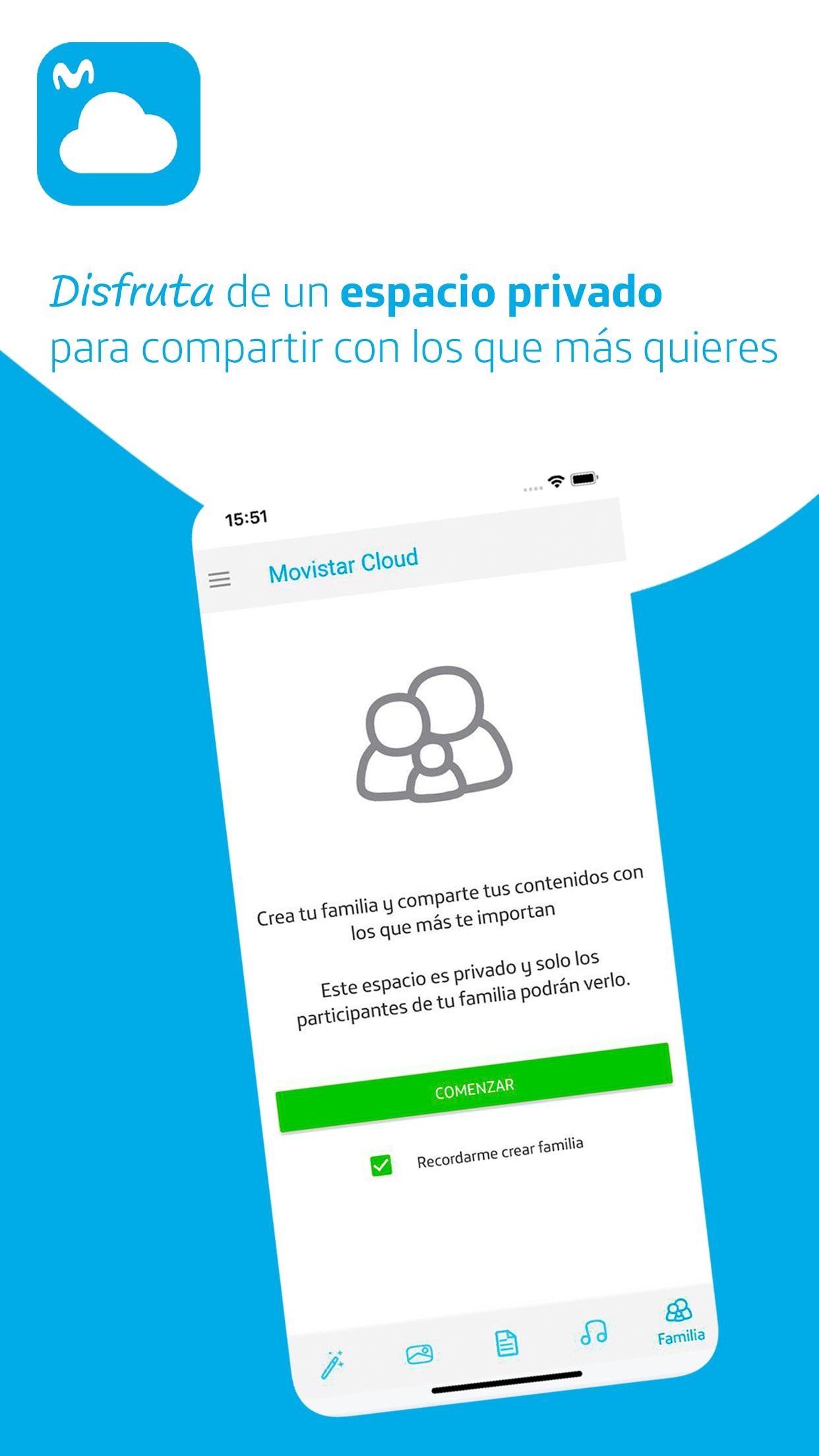 Movistar Cloud te permite guardar en un lugar de almacenamiento seguro en la nube imágenes, videos, canciones y documentos, acceder a ellos desde tu PC, smartphone o tablet y sincronizar tus contactos con todos tus dispositivos conectados.