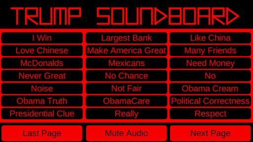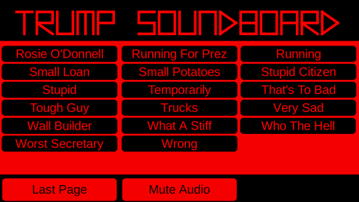 The soundboard for all of the amazing sounds Trump makes. This soundboard's was inspiration was the man Donald Trump himself. Donald Trump has had a lot of speeches in the past and this soundboard takes all of the sounds Trump makes and captures it in the perfect app format.