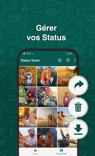 - Gérez le statut WhatsApp téléchargé dans la galerie intégrée.