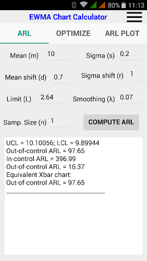 1.- To calculate the ARL of a EWMA control chart given its parameters and makes a comparison versus the standard Shewhart (Xbar) control chart.