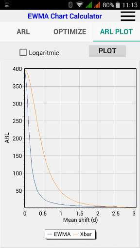 3.- To plot an ARL chart, showing a comparison of performance versus the standard Xbar control chart.