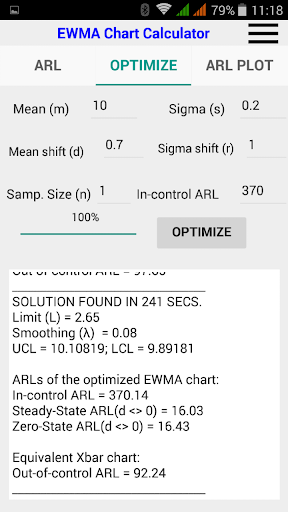 2.- To find the best parameters (optimization) to reach a given in-control ARL and to minimize the out-of-control ARL for a given shift.